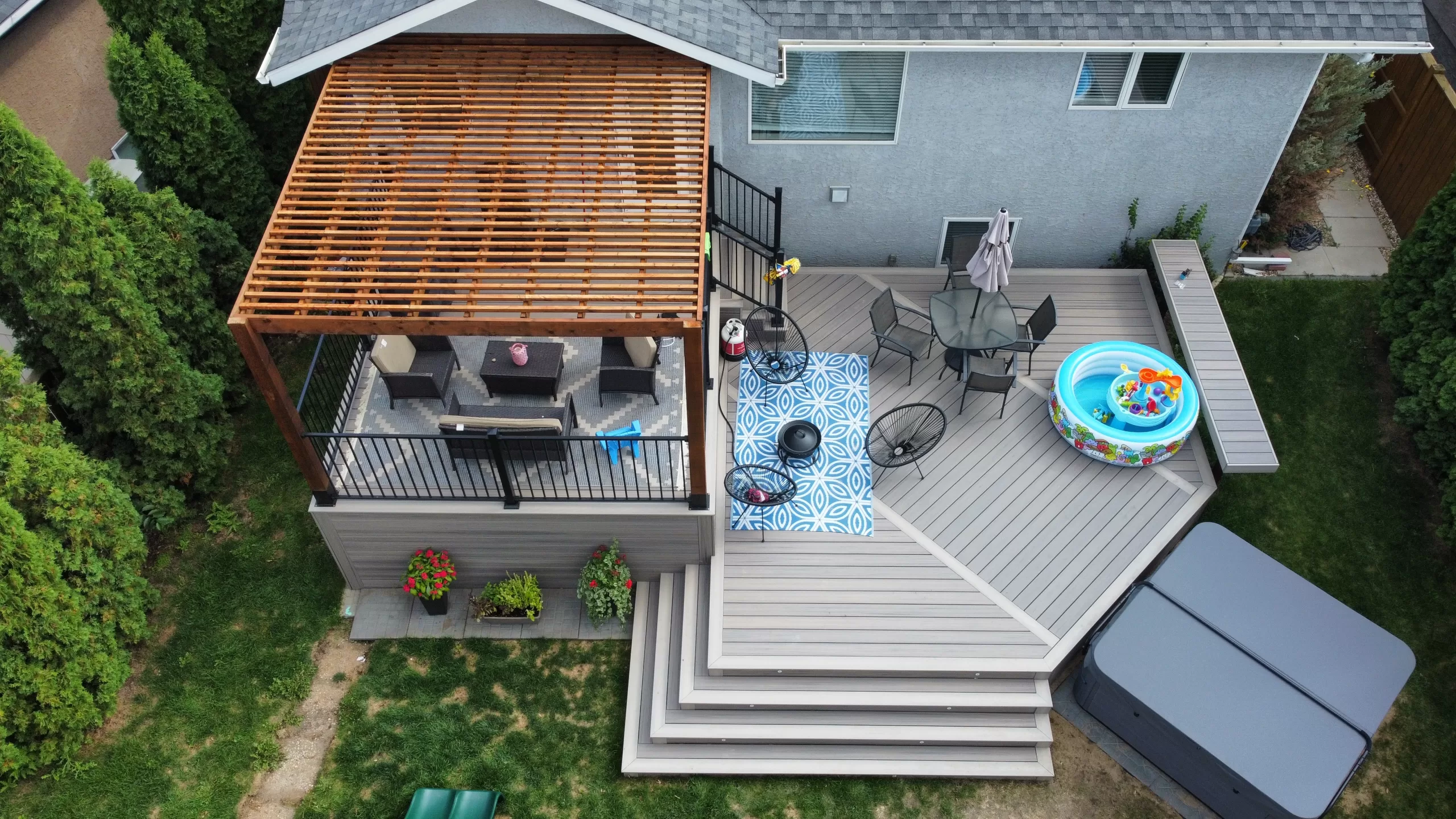 However, deck boards are only one component of the total project cost. When framing, foundations, railing, stairs, and labour are factored in, a typical composite deck is 20–30% more than a comparably sized pressure-treated wood deck.